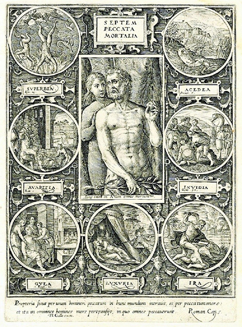 El papa san Gregorio Magno, cuyo pontificado fue del año 590 al 604, definió los pecados capitales como afectos desordenados de los que se derivan todos los demás y estableció su número en siete: soberbia, lujuria, acedia o pereza espiritual, gula, ira, envidia y avaricia. Además de ser pecados, son también son vicios, pues no son actos aislados, sino inclinaciones y hábitos.
